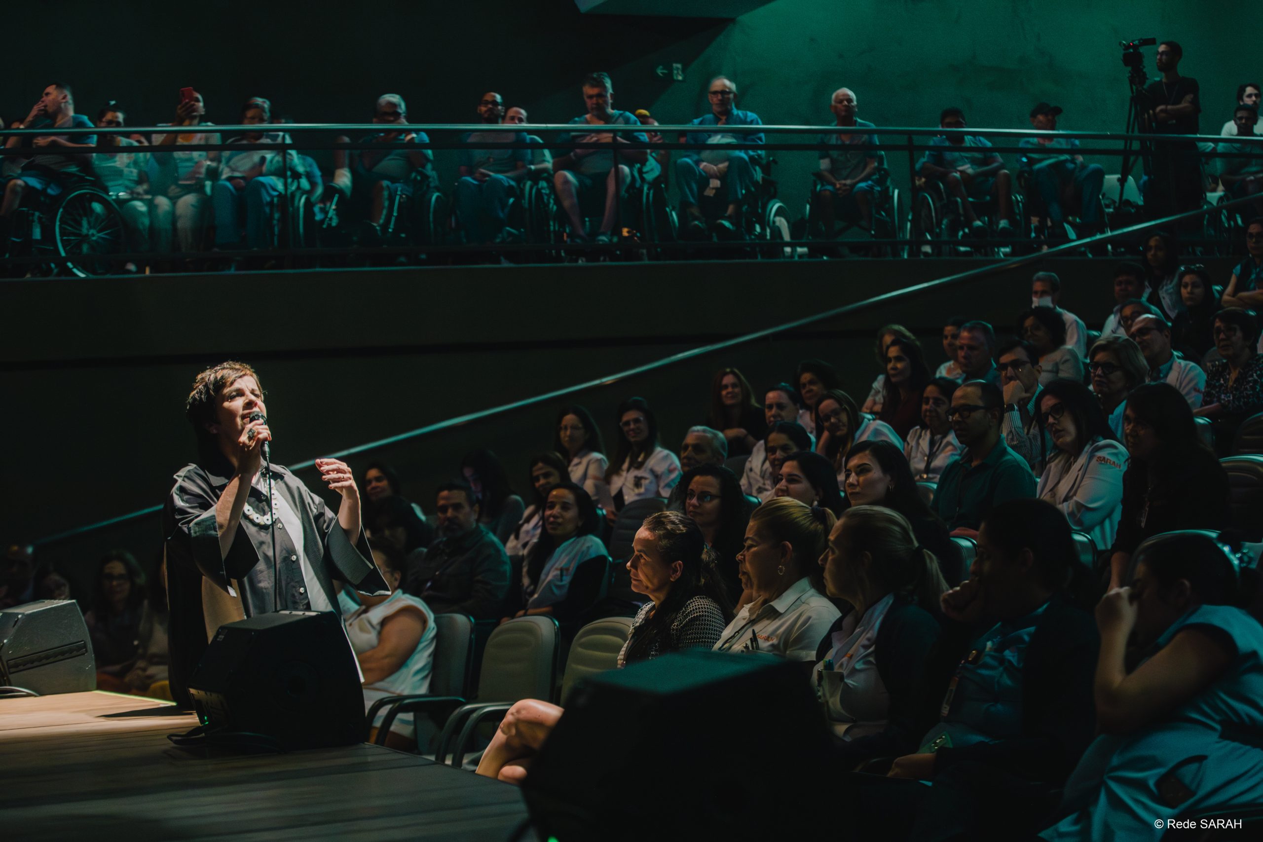 “Verde” e “Coisas do Brasil” foram as músicas escolhidas para abrir sua performance, já arrancando aplausos da plateia. A cantora e pianista, que chegou a cursar alguns semestres de medicina, comentou sobre como sente que o convite para cantar no palco do SARAH é uma forma de ajudar em todo o processo de reabilitação dos pacientes. “É com grande honra que recebi esse convite. Eu ia de fato ser médica, mas meu verdadeiro ofício é oferecer a vocês minhas receitas musicais. Escolhi cada música a dedo.”, declarou em meio ao show.