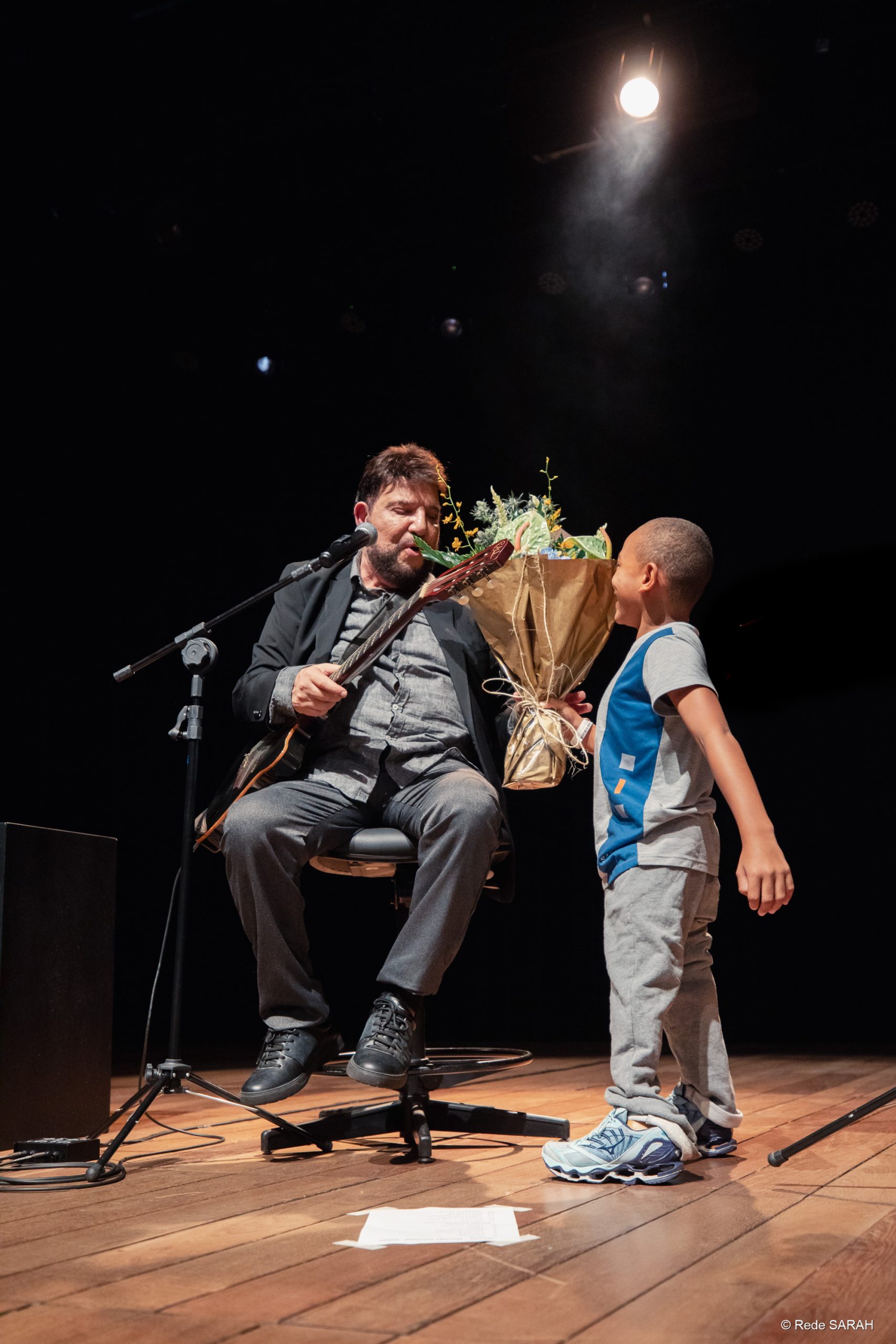 Pela segunda vez no Teatro SARAH, na tarde do dia 3 de abril de 2024, o cantor e compositor Michael Sullivan realizou uma belíssima apresentação para pacientes, acompanhantes e colaboradores da Rede SARAH.